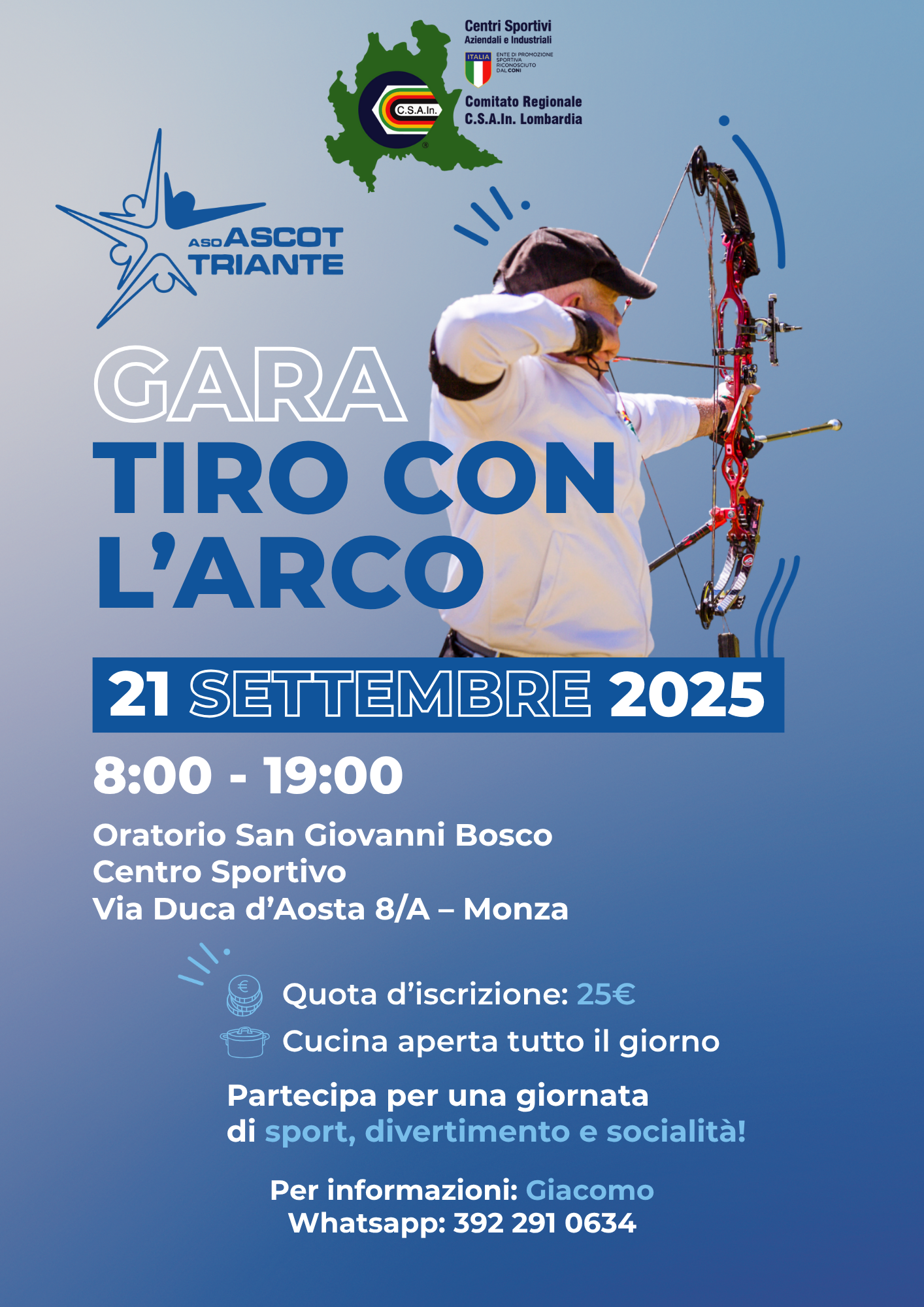 Vi aspettiamo numerosi per una nuova, emozionante gara organizzata da noi in collaborazione con CSAIn. Segnatevi la data: 📅 Domenica 21 settembre 2025 📍 ASCOT, Via Duca d’Aosta 8/A, Monza ⏰ Orario: 8:00 – 19:00